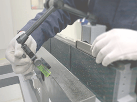 礦物鑄件又稱“人造大理石”“樹脂混凝土”,是用天然石碎料/鵝卵石、黃砂等為骨料,改性環(huán)氧樹脂等為膠凝材料,加入部分填料和外加劑經(jīng)過混合攪拌、振動密實而形成的一種新型高分子復合材料。其具有的復雜外型的成型能力和整合能力,高精度,良好的吸震性、熱穩(wěn)定性及耐腐蝕性等優(yōu)勢。